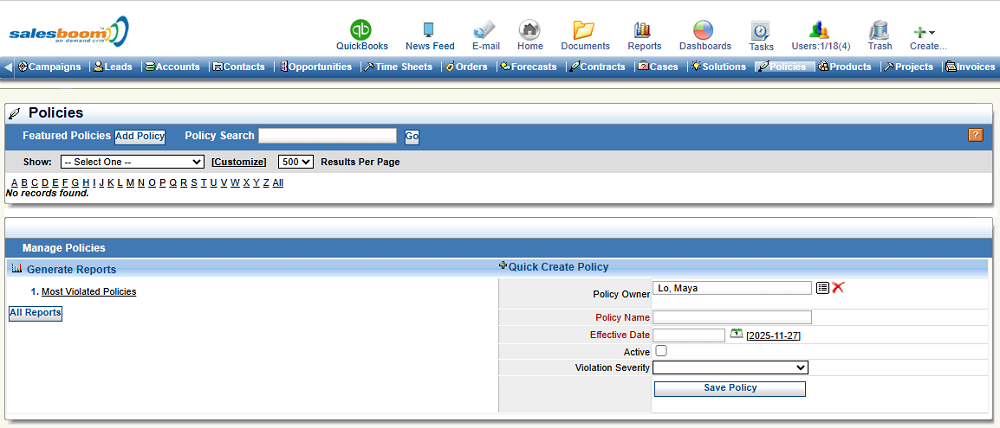 Because policies live inside the CRM rather than isolated document systems, they automatically connect to workflows, notifications, employee records, and compliance processes. This integration transforms policies from passive documents into active governance tools.
