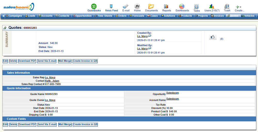 When preparing a quote in Salesboom Cloud CRM Software, employees have instant access to real-time information that enables them to create quotes designed for success:
