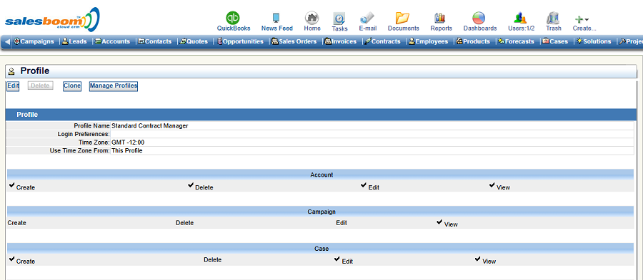 Profile-based security is Salesboom's implementation of role-based access control (RBAC) built directly into the CRM platform. Instead of managing permissions individually for each user, administrators create profiles that define consistent access rules for entire roles.